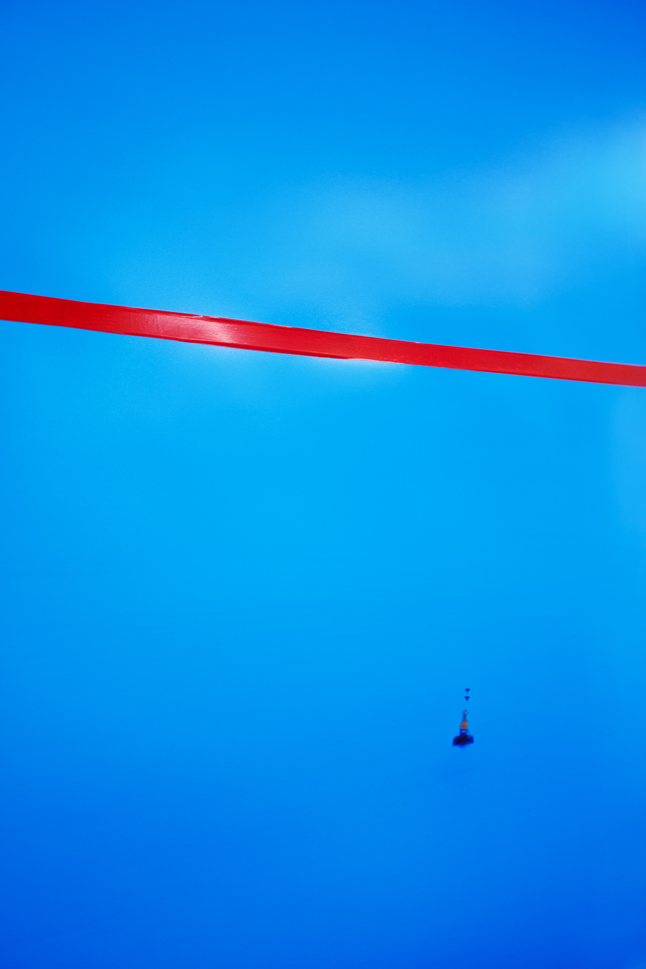 Scene from Above (Pool) draws specific inspiration from aerial images of southern European suburbs, where rows of red-roofed houses with pools stretch endlessly across the landscape. This serialised repetition transforms individual elements—houses, gardens, and pools—into a homogeneous system, mirroring the structures of mass production and standardisation.