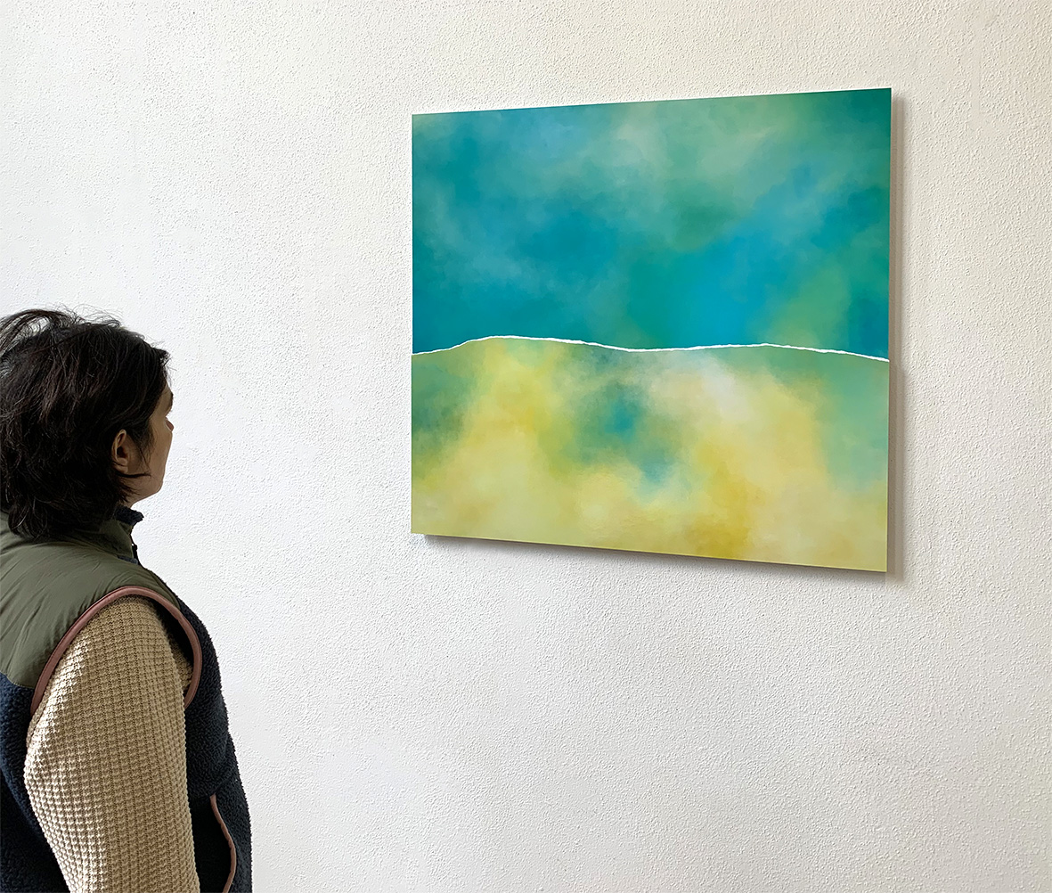 The series Scene from above is presented as a collection of small-scale models (approximately A4 in size). These models incorporate photographic prints that visualize landscapes, exploring the formal aspects of photography while prompting questions about the audience's perspective.